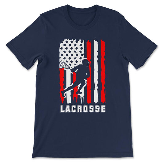 Lacrosse USA Flag American Lacrosse USA Lacrosse Player Gift Tee -