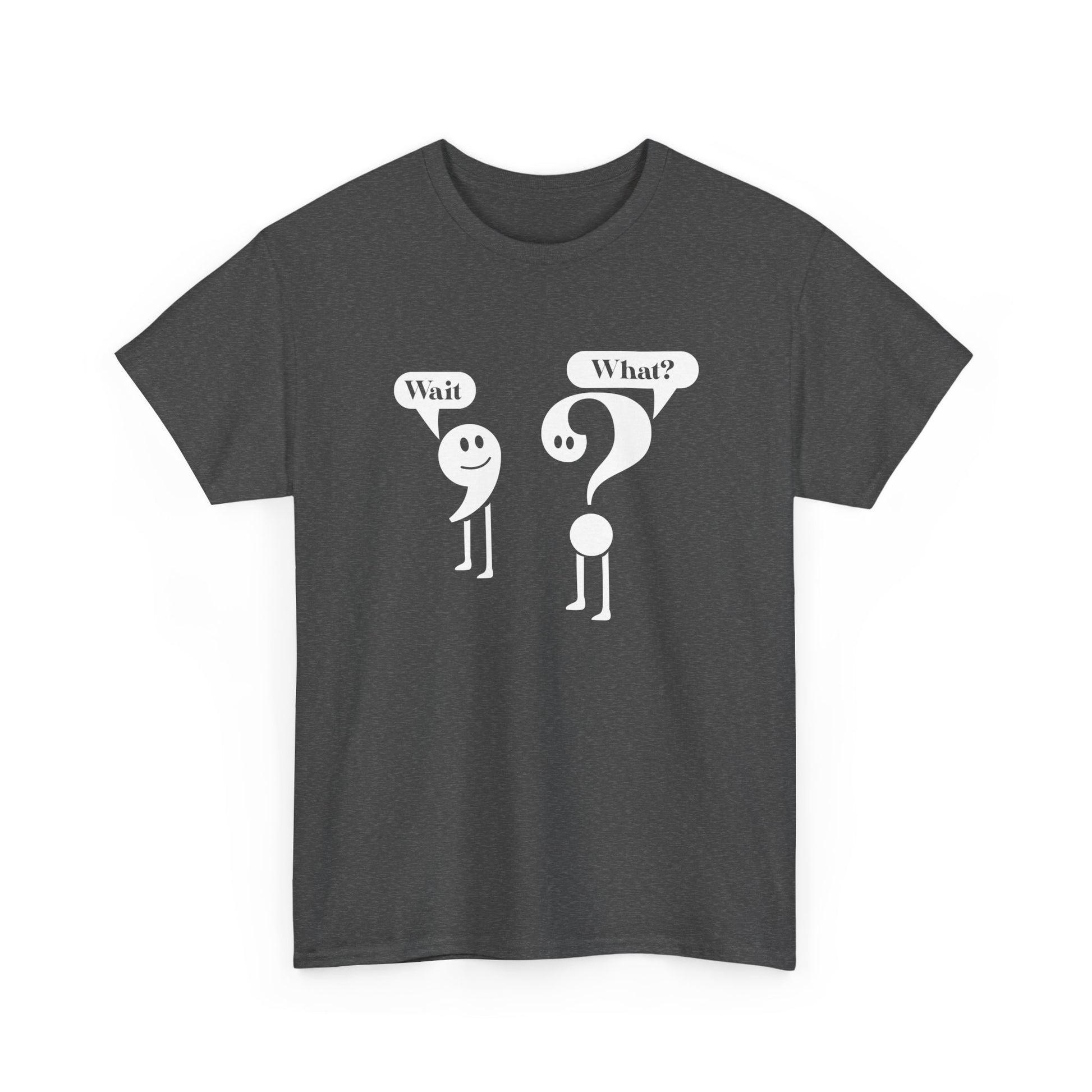 English grammar joke for people who are studying English in school, college, or university. Great design for English teachers who are involved in teaching English Grammar and use of punctuation marks to students. Funny English joke about the comma and question mark, saying 'wait' and 'what' respectively. This design will be loved by English langage teachers, students, and professors. This English Grammar Punctuation Teacher Student English Major item is designed by Funny English Language Designs by Fasaza.