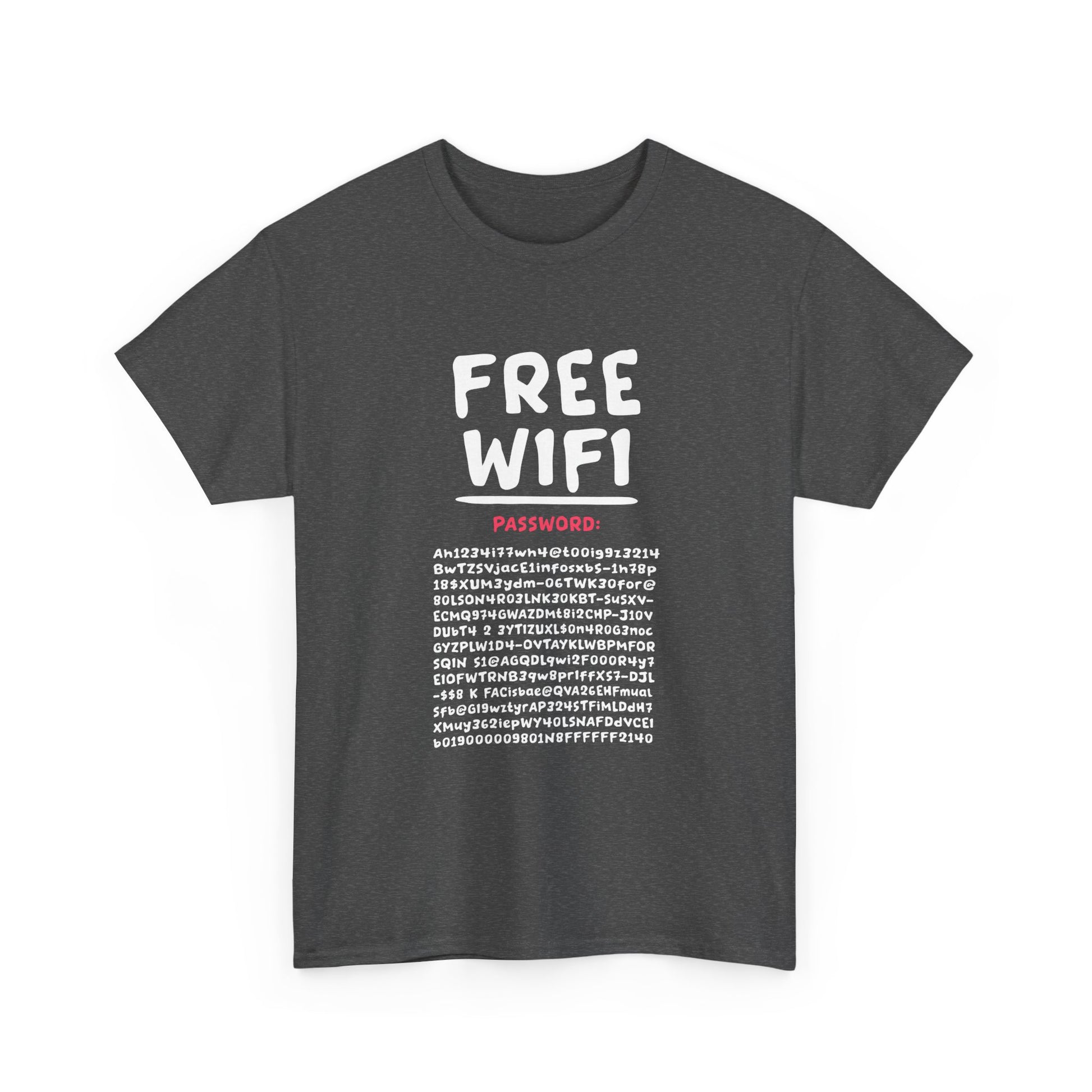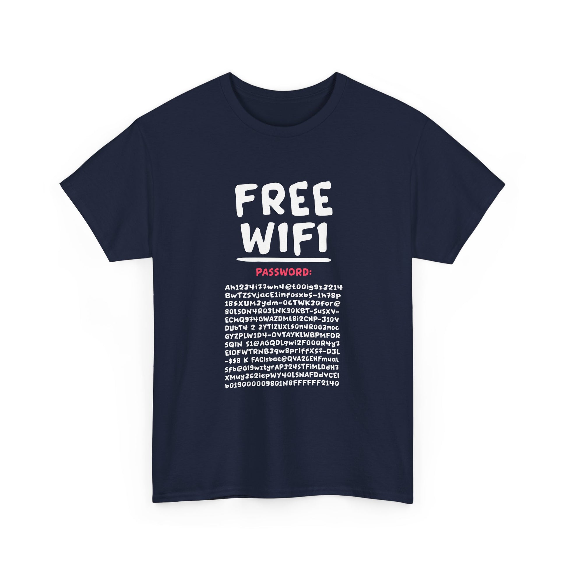 Funny free wifi password design for people who like to be funny in gatherings and parties. This design can be worn by teenagers, college students, programmers, coders, and people interested in hacking. This Funny FREE WIFI Free Internet Funny Password Hacker Party item is designed by Funny Internet Meme Designs. The unisex heavy cotton tee is the basic staple of any wardrobe. It is the foundation upon which casual fashion grows. All it needs is a personalized design to elevate things to profitability. The specially spun fibers provide a smooth surface for premium printing vividity and sharpness. No side seams mean there are no itchy interruptions under the arms. The shoulders have tape for improved durability. .: Made with medium fabric (5.3 oz/yd² (180 g/m²)) consisting of 100% cotton for year-round comfort that is sustainable and highly durable. .: The classic fit of this shirt ensures a comfy, relaxed wear while the crew neckline adds that neat, timeless look that can blend into any occasion, casual or semi-formal. .: The tear-away label means a scratch-free experience with no irritation or discomfort whatsoever. .: Made using 100% US cotton that is ethically grown and harvested. Gildan is also a proud member of the US Cotton Trust Protocol ensuring ethical and sustainable means of production. This blank tee is certified by Oeko-Tex for safety and quality assurance. EU representative: HONSON VENTURES LIMITED, gpsr@honsonventures.com, 3, Gnaftis House flat 102, Limassol, Mesa Geitonia, 4003, CY Product information: Gildan 5000, 2 year warranty in EU and Northern Ireland as per Directive 1999/44/EC Warnings, Hazard: For adults, Made in Nicaragua Care instructions: Machine wash: warm (max 40C or 105F), Non-chlorine: bleach as needed, Tumble dry: medium, Do not iron, Do not dryclean