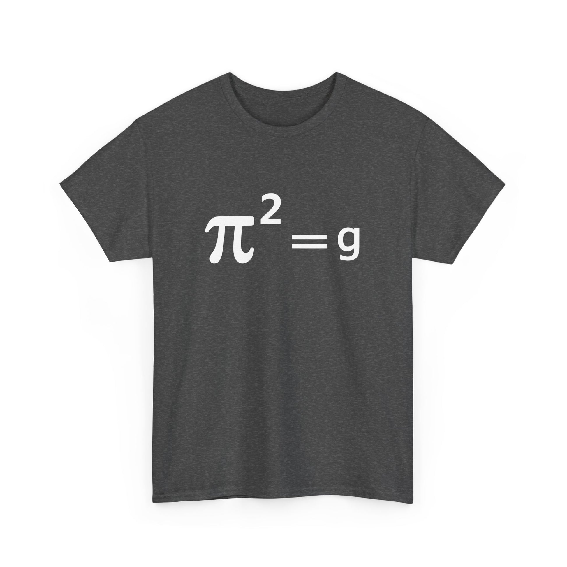 Fun maths joke where pi squared is equated to standard acceleration of gravity. Funny math equation with the use of funny pi. Math Pun Equation for those who like to joke mathematics at college and university. Perfect design for a maths teacher, professor and Ph.D. Students studying mathematical equations and mathematical This Funny Math Joke Pun - Pi Joke pi squared = g Maths Pun Joke item is designed by Funny Math Designs by Fasaza. The unisex heavy cotton tee is the basic staple of any wardrobe. It is the foundation upon which casual fashion grows. All it needs is a personalized design to elevate things to profitability. The specially spun fibers provide a smooth surface for premium printing vividity and sharpness. No side seams mean there are no itchy interruptions under the arms. The shoulders have tape for improved durability. .: Made with medium fabric (5.3 oz/yd² (180 g/m²)) consisting of 100% cotton for year-round comfort that is sustainable and highly durable. .: The classic fit of this shirt ensures a comfy, relaxed wear while the crew neckline adds that neat, timeless look that can blend into any occasion, casual or semi-formal. .: The tear-away label means a scratch-free experience with no irritation or discomfort whatsoever. .: Made using 100% US cotton that is ethically grown and harvested. Gildan is also a proud member of the US Cotton Trust Protocol ensuring ethical and sustainable means of production. This blank tee is certified by Oeko-Tex for safety and quality assurance. EU representative: HONSON VENTURES LIMITED, gpsr@honsonventures.com, 3, Gnaftis House flat 102, Limassol, Mesa Geitonia, 4003, CY Product information: Gildan 5000, 2 year warranty in EU and Northern Ireland as per Directive 1999/44/EC Warnings, Hazard: For adults, Made in Nicaragua Care instructions: Machine wash: warm (max 40C or 105F), Non-chlorine: bleach as needed, Tumble dry: medium, Do not iron, Do not dryclean