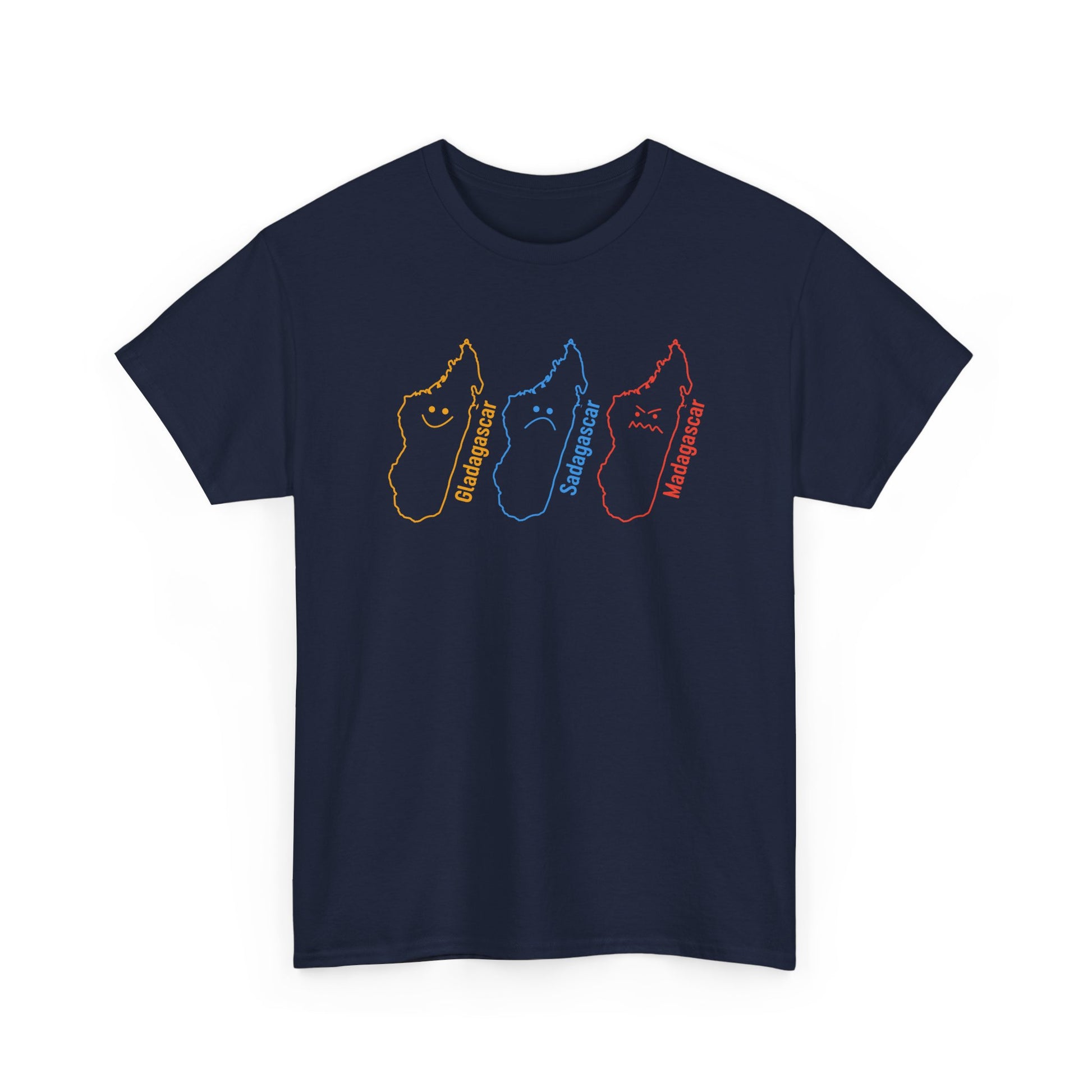 Funny Geography design with maps of Gladagascar, Sadagascar, and Madagascar. Cute design for geographers who love to read maps and are interested in the world maps and country maps. Funny Geography pun with funny variations of Madagascar design. Great geography joke design for geography teachers, geography students, and anyone who likes to study geography. This Geography Geographer Funny Gladagascar Sadagascar Madagascar item is designed by Geography Designs for Geographers by Fasaza. The unisex heavy cotton tee is the basic staple of any wardrobe. It is the foundation upon which casual fashion grows. All it needs is a personalized design to elevate things to profitability. The specially spun fibers provide a smooth surface for premium printing vividity and sharpness. No side seams mean there are no itchy interruptions under the arms. The shoulders have tape for improved durability. .: Made with medium fabric (5.3 oz/yd² (180 g/m²)) consisting of 100% cotton for year-round comfort that is sustainable and highly durable. .: The classic fit of this shirt ensures a comfy, relaxed wear while the crew neckline adds that neat, timeless look that can blend into any occasion, casual or semi-formal. .: The tear-away label means a scratch-free experience with no irritation or discomfort whatsoever. .: Made using 100% US cotton that is ethically grown and harvested. Gildan is also a proud member of the US Cotton Trust Protocol ensuring ethical and sustainable means of production. This blank tee is certified by Oeko-Tex for safety and quality assurance. EU representative: HONSON VENTURES LIMITED, gpsr@honsonventures.com, 3, Gnaftis House flat 102, Limassol, Mesa Geitonia, 4003, CY Product information: Gildan 5000, 2 year warranty in EU and Northern Ireland as per Directive 1999/44/EC Warnings, Hazard: For adults, Made in Nicaragua Care instructions: Machine wash: warm (max 40C or 105F), Non-chlorine: bleach as needed, Tumble dry: medium, Do not iron, Do not dryclean