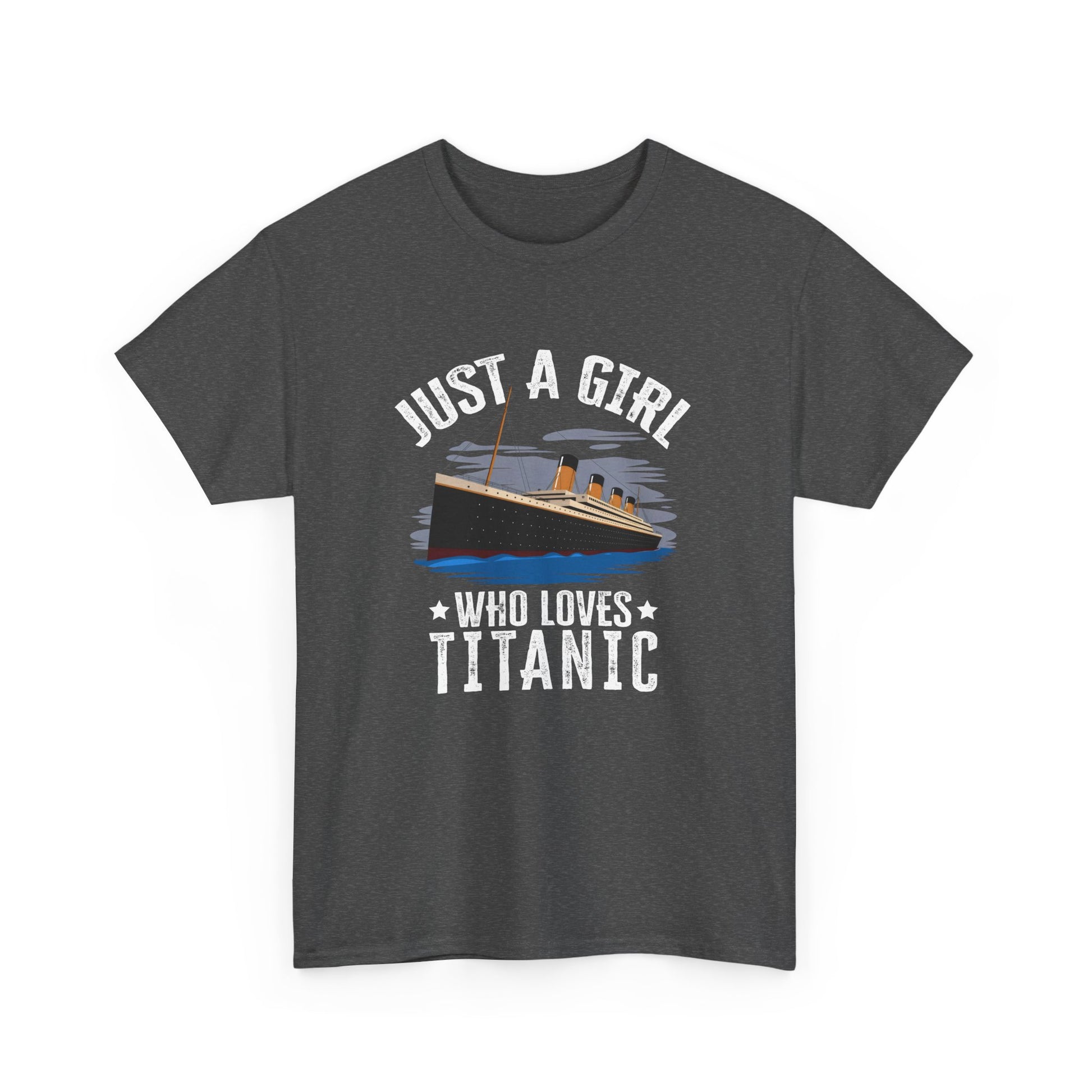 Cute Titanic design for women and girls who are interested in Titanic and the history of Titanic 1912. This cute design is in memory of the famous cruise ship named Titanic. This retro Titanic design will be loved by girls who love the Titanic. This Just Girl Who Loves Titanic Girl Titanic Design for Women item is designed by Titanic Designs by Fasaza. The unisex heavy cotton tee is the basic staple of any wardrobe. It is the foundation upon which casual fashion grows. All it needs is a personalized design to elevate things to profitability. The specially spun fibers provide a smooth surface for premium printing vividity and sharpness. No side seams mean there are no itchy interruptions under the arms. The shoulders have tape for improved durability. .: Made with medium fabric (5.3 oz/yd² (180 g/m²)) consisting of 100% cotton for year-round comfort that is sustainable and highly durable. .: The classic fit of this shirt ensures a comfy, relaxed wear while the crew neckline adds that neat, timeless look that can blend into any occasion, casual or semi-formal. .: The tear-away label means a scratch-free experience with no irritation or discomfort whatsoever. .: Made using 100% US cotton that is ethically grown and harvested. Gildan is also a proud member of the US Cotton Trust Protocol ensuring ethical and sustainable means of production. This blank tee is certified by Oeko-Tex for safety and quality assurance. EU representative: HONSON VENTURES LIMITED, gpsr@honsonventures.com, 3, Gnaftis House flat 102, Limassol, Mesa Geitonia, 4003, CY Product information: Gildan 5000, 2 year warranty in EU and Northern Ireland as per Directive 1999/44/EC Warnings, Hazard: For adults, Made in Nicaragua Care instructions: Machine wash: warm (max 40C or 105F), Non-chlorine: bleach as needed, Tumble dry: medium, Do not iron, Do not dryclean