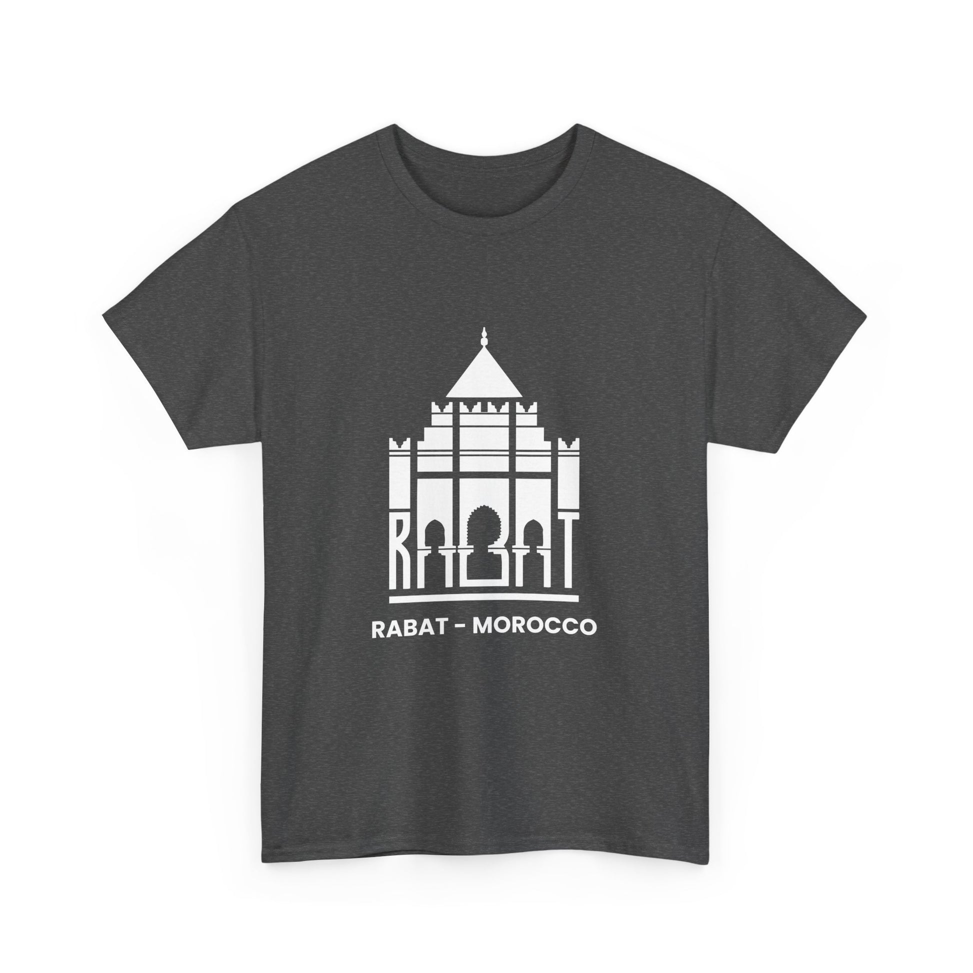 Rabat is the capital city of Morocco and home to Moroccans. Rabat is a famous tourist destination for tourists. This Rabat design will be welcomed by people living in Rabat, Morocco. Also a great design for sports fans. This Rabat, Morocco Capital Tour Tourists Moroccans Vacation item is designed by Rabat Morroco City Designs by Fasaza. The unisex heavy cotton tee is the basic staple of any wardrobe. It is the foundation upon which casual fashion grows. All it needs is a personalized design to elevate things to profitability. The specially spun fibers provide a smooth surface for premium printing vividity and sharpness. No side seams mean there are no itchy interruptions under the arms. The shoulders have tape for improved durability. .: Made with medium fabric (5.3 oz/yd² (180 g/m²)) consisting of 100% cotton for year-round comfort that is sustainable and highly durable. .: The classic fit of this shirt ensures a comfy, relaxed wear while the crew neckline adds that neat, timeless look that can blend into any occasion, casual or semi-formal. .: The tear-away label means a scratch-free experience with no irritation or discomfort whatsoever. .: Made using 100% US cotton that is ethically grown and harvested. Gildan is also a proud member of the US Cotton Trust Protocol ensuring ethical and sustainable means of production. This blank tee is certified by Oeko-Tex for safety and quality assurance. EU representative: HONSON VENTURES LIMITED, gpsr@honsonventures.com, 3, Gnaftis House flat 102, Limassol, Mesa Geitonia, 4003, CY Product information: Gildan 5000, 2 year warranty in EU and Northern Ireland as per Directive 1999/44/EC Warnings, Hazard: For adults, Made in Nicaragua Care instructions: Machine wash: warm (max 40C or 105F), Non-chlorine: bleach as needed, Tumble dry: medium, Do not iron, Do not dryclean
